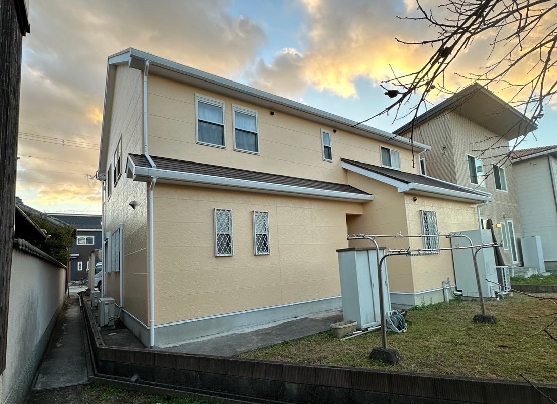 外壁塗装 八尾市 T様邸 外壁塗装を施工させて頂きました 施工前 施工後 色褪せとコーキングの劣化等が気になり、今回の塗装は遮熱性能を高めたいとの事でご縁を頂き施工させて頂きました。 外壁、屋根共通して遮熱性能の高い塗料を採用して塗装を行いました。 工事の概要 築年数約20年 外壁素材外壁サイディング 屋根素材カラーベスト 外壁塗料無機フッ素 屋根塗料無機フッ素 カラー濃い黄色 施工内容屋根外壁塗装、付帯部、コーキング打ち換え お客様の声 非常に綺麗くなり、お家が生き返った感じがします。 本当にお任せして良かったです。 施工の様子